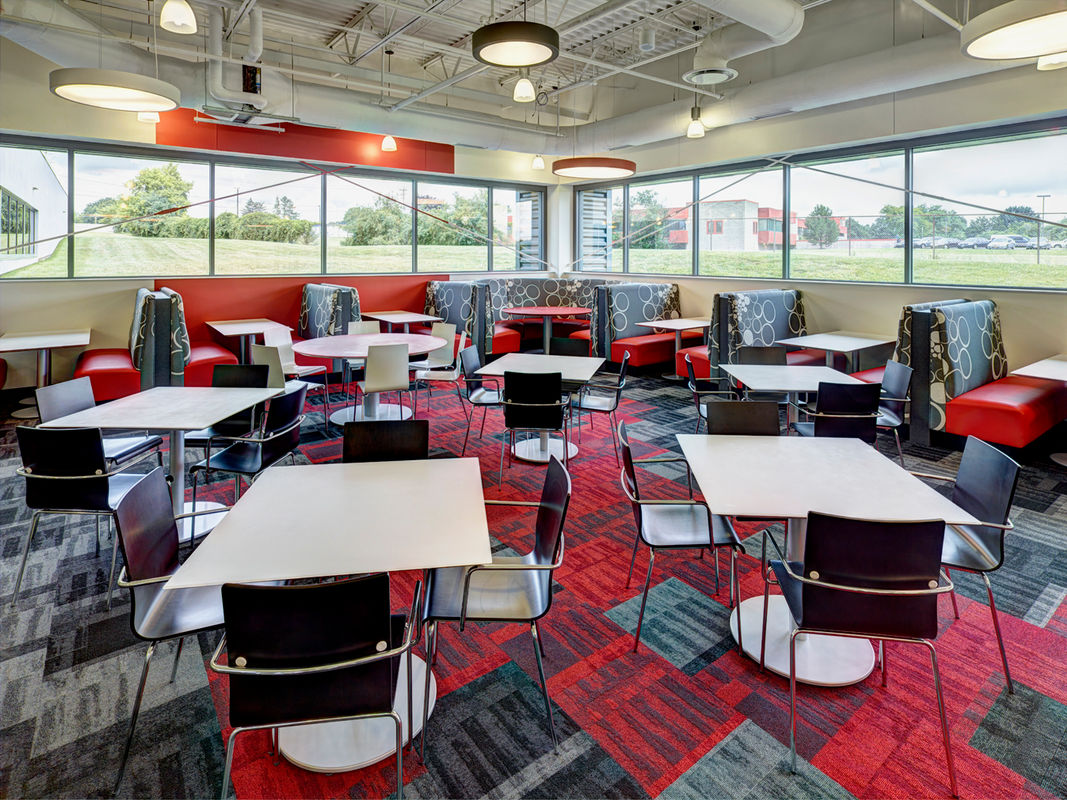 The program included a new entrance and reception lobby; open office space to accommodate 300 employees, including future growth projections; boardroom and meeting areas; corporate IT center (1500+ SF) with IT testing laboratory; facility support spaces; and employee amenities including a cafeteria and fitness center.