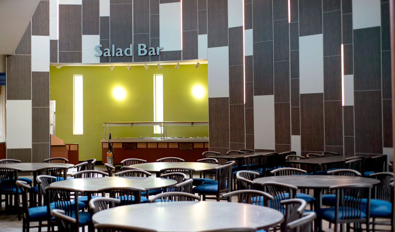 The 50-year old Terrace Dining Hall was renovated to enhance and energize the students’ dining experience. The previous dark and under-illuminated atmosphere was dated and worn, aggravated by the brutalist concrete structure.